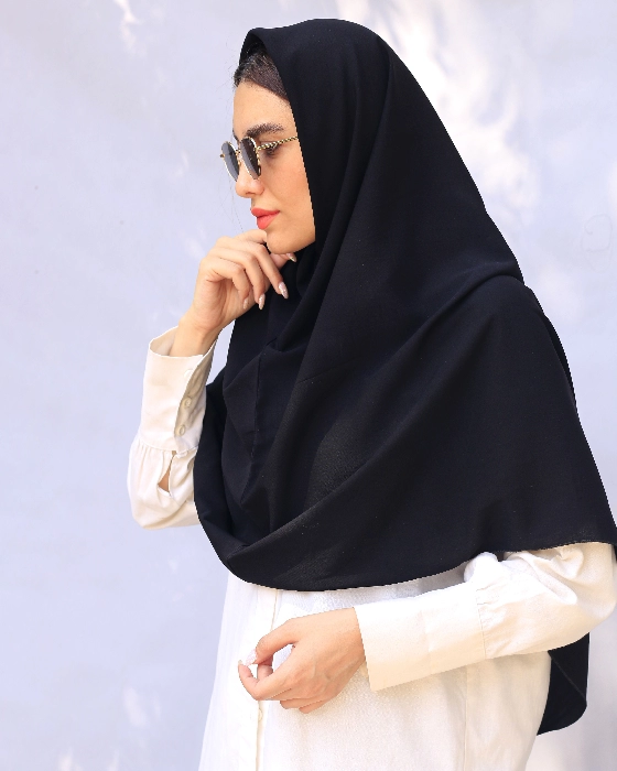 نمایش کمترحجاب شیک و راحت برای بانوان ایرانی با مقنعه مشکی کرپ قواره 90