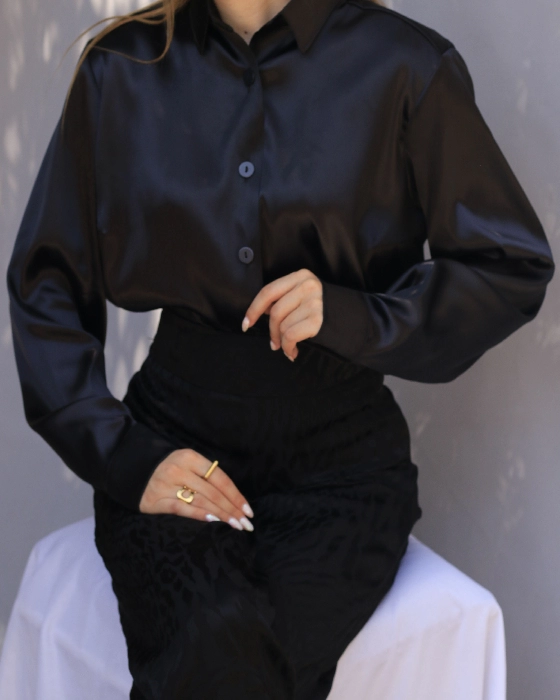 - استایل مجلسی: شومیز مشکی ساتن را با دامن بلند و جواهرات ظریف ست کنید تا یک استایل مجلسی و جذاب داشته باشید.