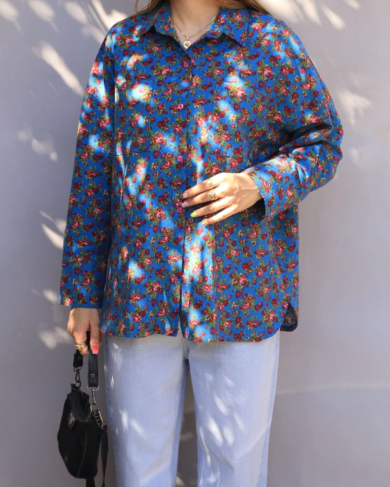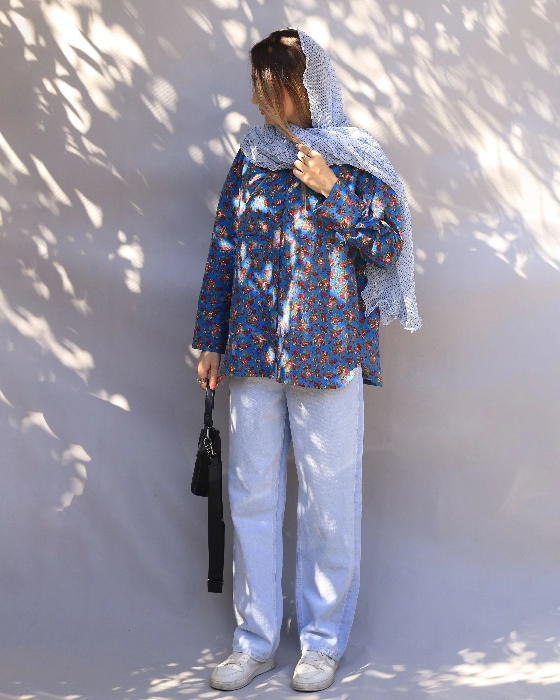 نمایش کمترشومیز آبی گل قرمز؛ طراوتی بهاری برای استایل شما