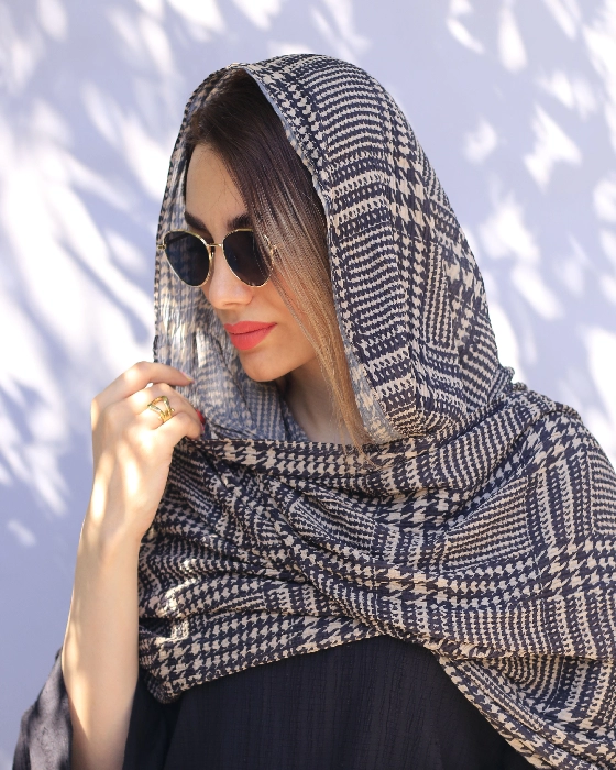 - با لباسهای تیره: برای ایجاد یک کنتراست زیبا، شال پلیسه کرم طرحدار را با لباسهای تیره مانند مشکی، سرمهای یا زرشکی ست کنید.