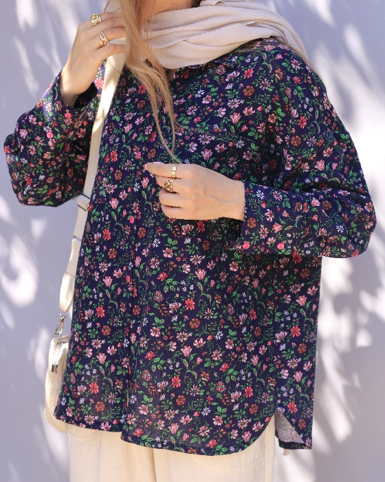 - گلهای ریز و ظریف: گلهای ریز و ظریف به کار رفته در طراحی این شومیز، به آن جلوهای زنانه و رمانتیک بخشیده است. این طرح زیبا، مناسب برای خانمهایی است که به دنبال استایلی شیک و متفاوت هستند.